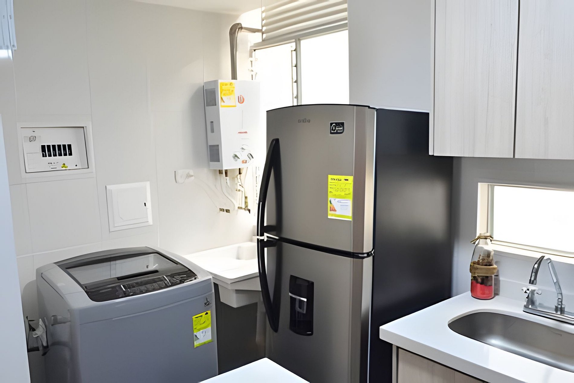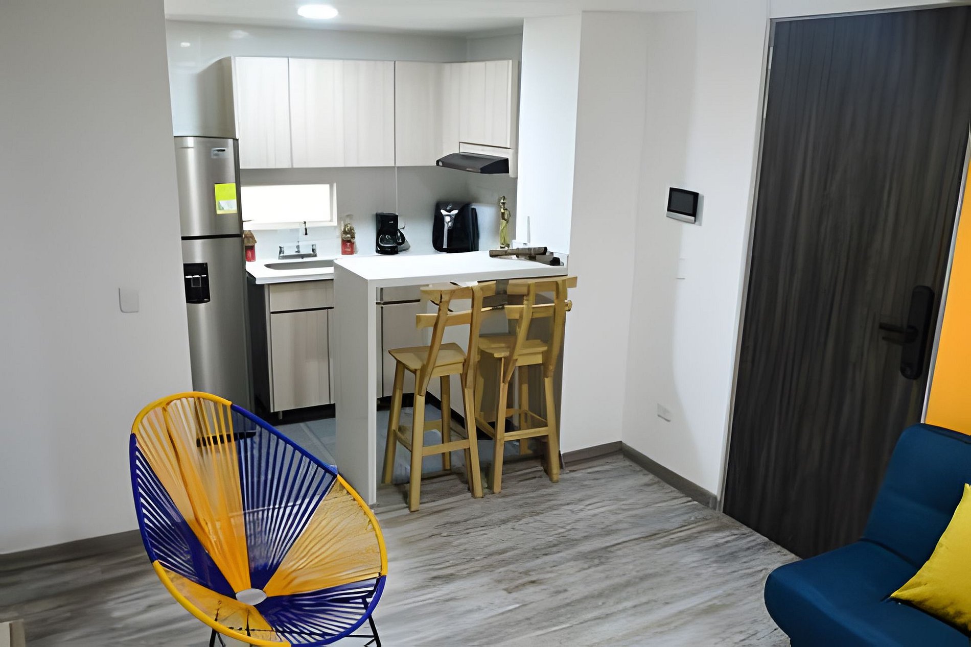 Cocina: La cocina está completamente equipada con una freidora de aire, nevera, ollas y todos los utensilios necesarios para preparar tus comidas favoritas. Además, cuenta con una lavadora para mayor comodidad durante tu estancia. Baños: El apartamento incluye agua caliente en todas las áreas, garantizando una ducha cómoda y refrescante. Los baños son modernos y están equipados con lo necesario.